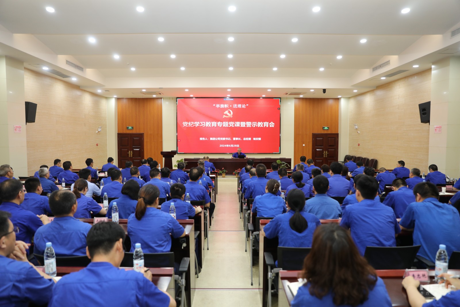 為慶祝中國共產黨成立103周年,深入學習習近平總書記關于全面加強黨的紀律建設的重要論述,推動黨紀學習教育走深走實,6月28日下午,集團公司召開慶祝建黨103周年“舉旗幟·送理論”黨紀學習教育專題黨課暨警示教育會和2023年度優秀精益黨建項目表彰會,集團公司黨委書記、董事長、總經理楊安國出席并作專題紀律黨課,省監委駐集團監察專員、集團公司黨委委員、紀委書記宗學彬主持會議。