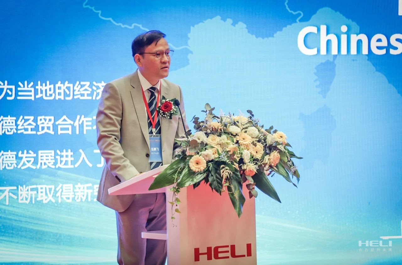 伍鵬飛代表總領館對活動成功舉辦表示熱烈祝賀,對安徽叉車集團進入德國市場30余年來的長足發展、對當地經濟社會的積極貢獻給予高度評價,稱其為中國企業擁抱全球化的成功典范、中德經貿合作不斷深化的生動見證。同時,伍鵬飛向黑森州及弗里德貝格市(Friedberg)、韋特勞縣(Wetteraukreis)當地政商界的大力支持表示感謝。