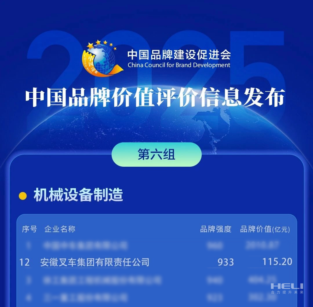 在這一備受矚目的榜單中,叉車集團第五次榮耀登榜,以933的品牌強度和115.20億元的品牌價值創下歷屆新高。這一成績不僅彰顯了叉車集團作為工業車輛行業領軍者的卓越實力,更成為行業從“中國制造”向“中國創造”、“中國速度”向“中國質量”、“中國產品”向“中國品牌”轉變的杰出代表。